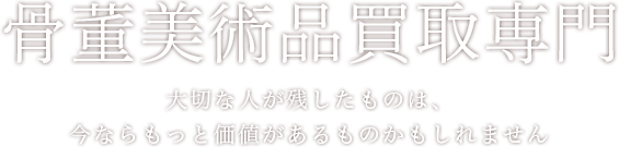 ご家族や故人が残したさまざまな遺品の中には、捨ててしまうにはもったいない価値のあるお品もあります。ぜひ一度古美術商にご相談ください。