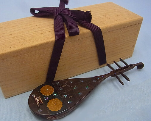 川﨑鳳嶽 正倉院形 螺鈿紫檀五絃琵琶香合